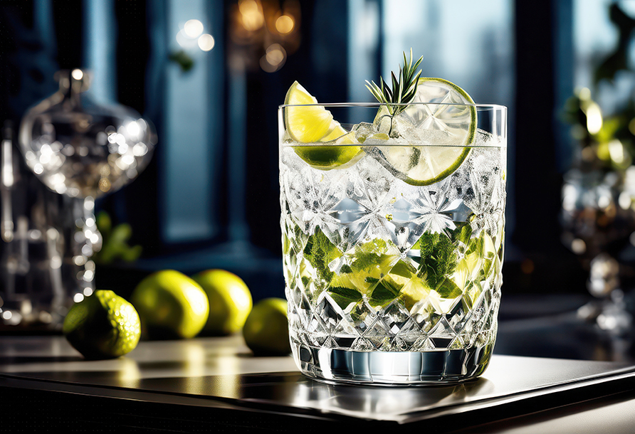 Design-Flaschen, Holzbrettchen und Gläser ganz nach Ihren